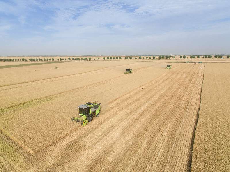 ▲中联重科收割机在金色的麦田里作业