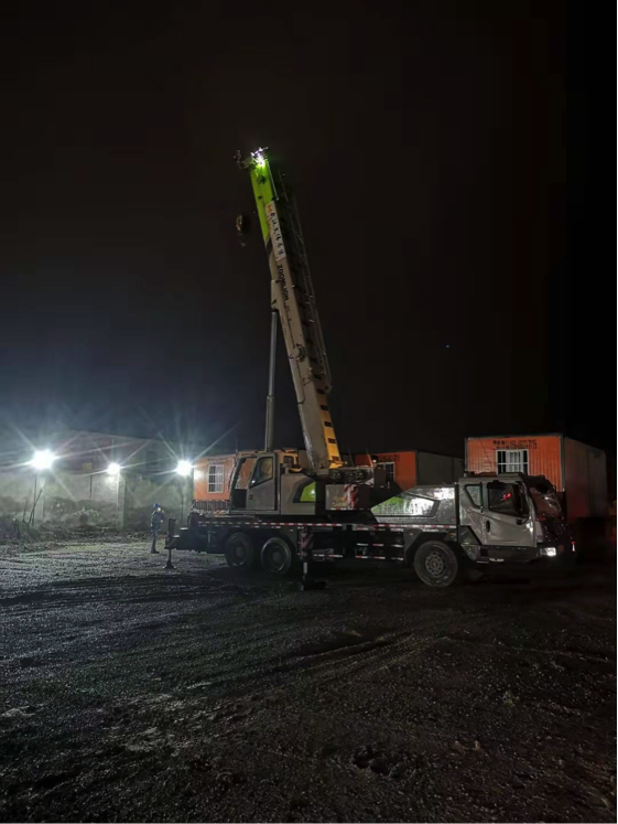与此同时,位于蔡甸区的武汉火神山医院也建设正酣,1月26日,中联重科起重机、混凝土泵车相继进场施工。26日凌晨,中联重科客户、本次项目吊装工程主要施工方文伟吊装接到项目指令进场开工,主要进行调运集装箱物资等吊装工作。经过昼夜不停运转,中联重科起重机出色完成任务。