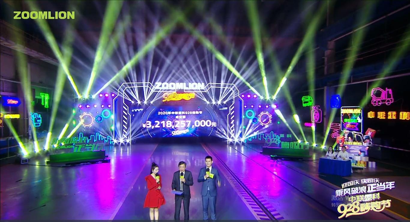 到当晚21:28分时,中联重科副总裁郭学红宣布了本次嗨购节成果:“中联重科‘乘风破浪正当年928嗨购节’的成交额为32.18亿元。