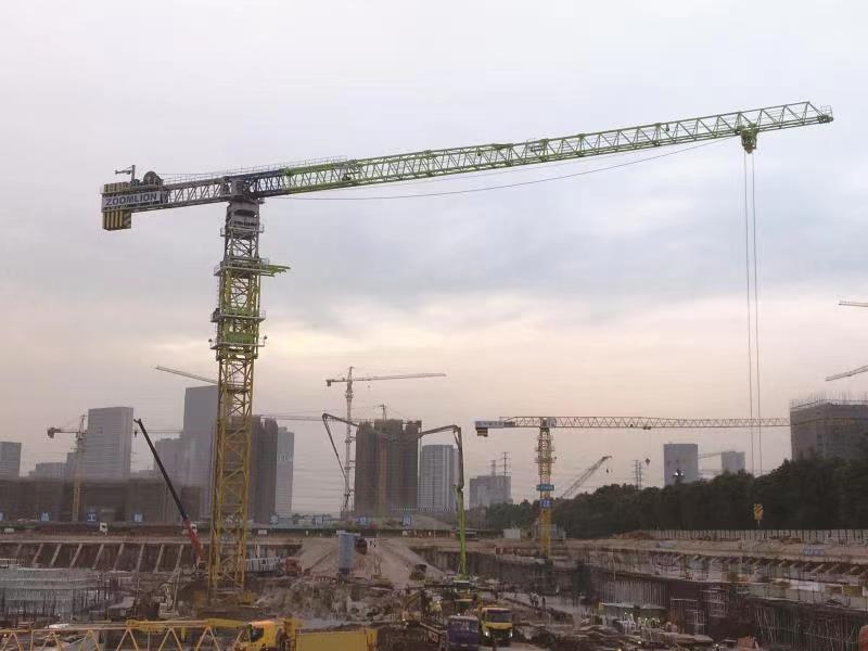 项目开工前,中建四局就邀请全国各地经验丰富的专家开展大型塔吊选型论证会,多次对比论证,并对不同阶段使用工况进行分析,同时对塔机租赁服务商的设备实力和服务能力也进行了严格考察,**终选定了中联重科T2200-80V、D2500-120等12台超大型塔机负责项目的主体吊运工作。
