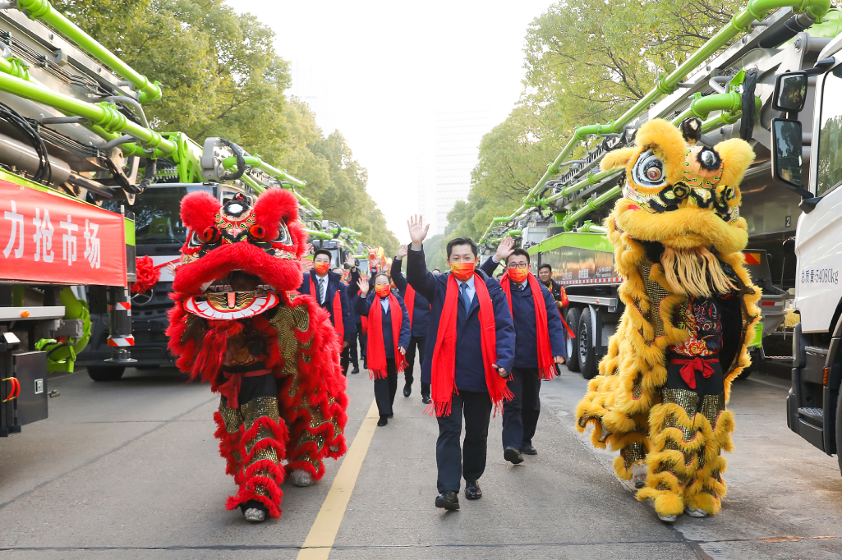 1月27日,正月初六上午8:08,中联重科麓谷工业园龙狮齐舞、锣鼓喧天,在一片热闹喜庆的氛围中,中联重科混凝土泵送机械新春“开门红”暨全球发车仪式隆重举行。