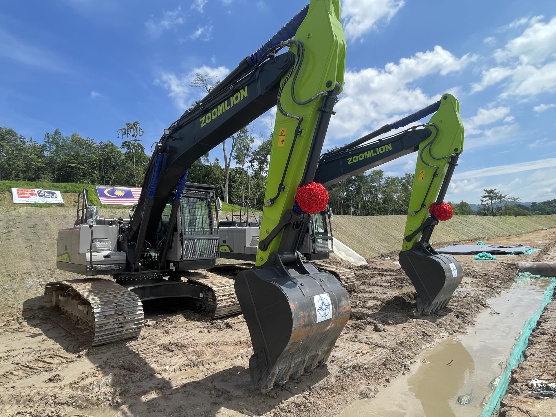 当地时间6月19日下午,马来西亚东海岸铁路项目鹅唛车站动工仪式在吉隆坡北部的鹅唛隆重举行。仪式上,中联重科多款挖掘机“戴”着红花傲立活动现场,在接下来的施工中,将为项目建设提供强大的设备保障。