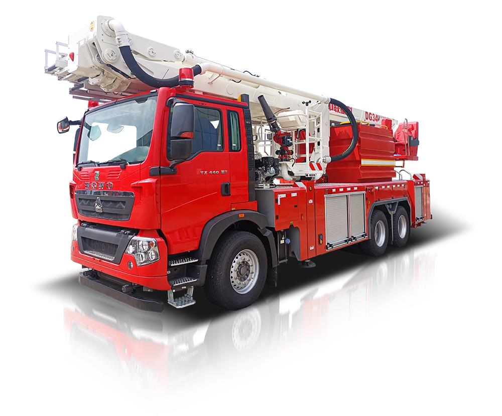中联重科DG34型登高平台消防车,结合国际上消防车的先进理念和消防实战经验创新设计而成,具备强大的高空救援和消防灭火能力,整车性能优越,快速高效,操作性、安全性及智能化控制处于国内领先水平。